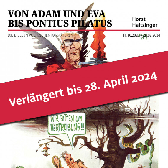 In der Ausstellung „Von Adam und Eva bis Pontius Pilatus“ zeigte das BIBEL MUSEUM BAYERN eine große Auswahl der Schwarz-Weiß- und Aquarell-Karikaturen Horst Haitzingers. Die Bilder spannten einen weiten Bogen von der Erschaffung der Welt, dem Paradies über die Zehn Gebote, die Krippe, die Heiligen Drei Könige bis hin zu Pontius Pilatus.