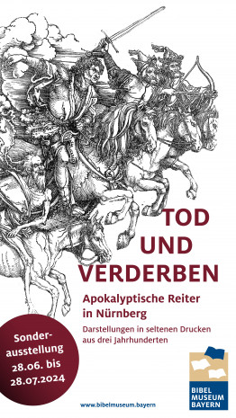 Inspiriert durch die Uraufführung von Hillers Apokalypse beim Musikfest ION (27. Juni bis 7. Juli 2024) befasst sich das Bibelmuseum in seiner neuen Sonderausstellung ebenfalls mit einem Motiv der Apokalypse: den Tod und Verderben bringenden vier Reitern der Apokalypse.