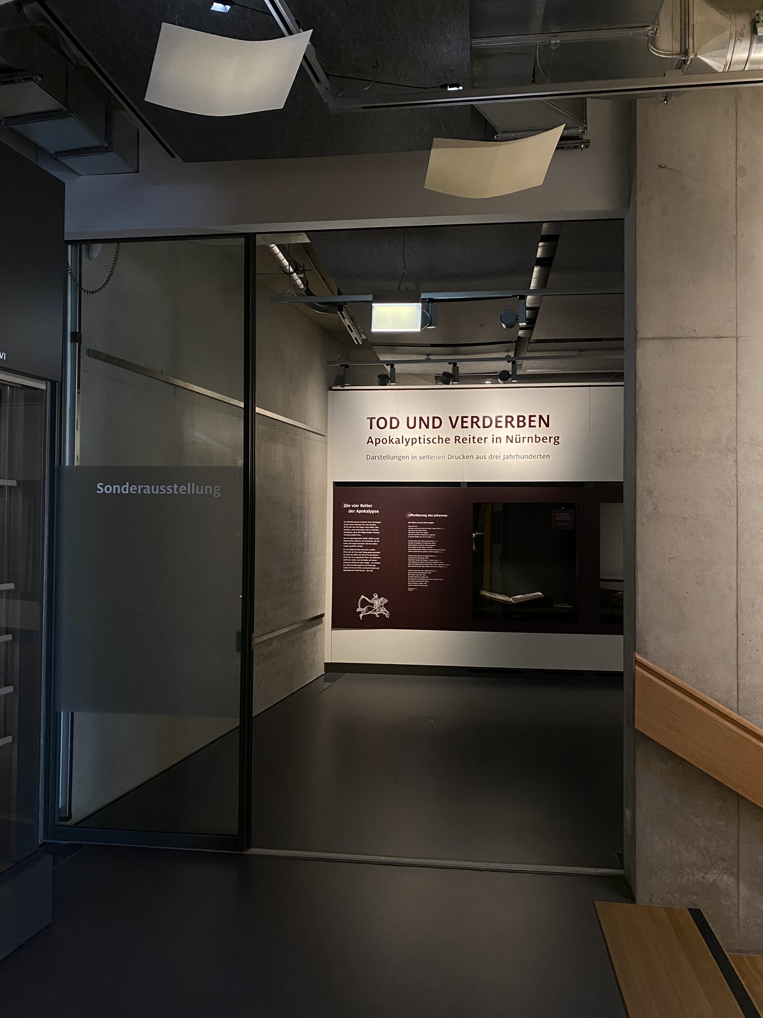 Mit Einblicken in die Ausstellungskonzeption und interessanten Details zu den ausgestellten Objekten eröffnete das Bibelmuseum am 27.06.24 seine neue Sonderausstellung "TOD UND VERDERBEN. Apokalyptische Reiter in Nürnberg - Darstellungen in seltenen Drucken aus drei Jahrhunderten".