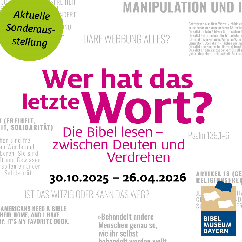 Hier finden Sie die vielfältigen Veranstaltungen des BIBEL MUSEUM BAYERN.